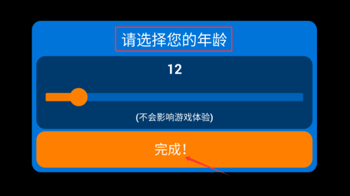 1、在年齡選擇界面滑動(dòng)數(shù)字選擇12歲,點(diǎn)擊完成按鈕確認(rèn)。